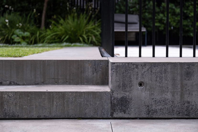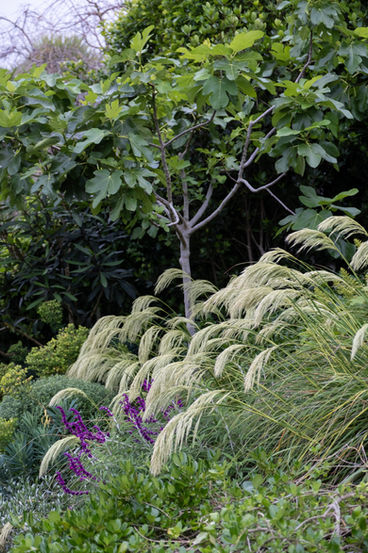 The side garden serves primarily as a passage to the front of the house containing the services and storage needs associated with the garden and pool. The front garden is completely planted with a more floriferous mix of plants including Fig and citrus trees underplanted with flowering perennials.