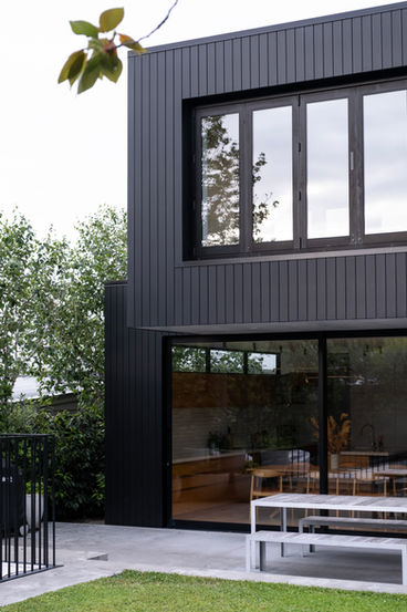 A carefully proportioned and simple composition seemed to work best to achieve a spacious garden which could include the programmatic requirements of the client's brief. Privacy planting coupled with seasonality, texture and layering informed the planting design which combines evergreen hedges with some deciduous trees and shrubs. Edible planting is all contained within pots around the dining terrace.